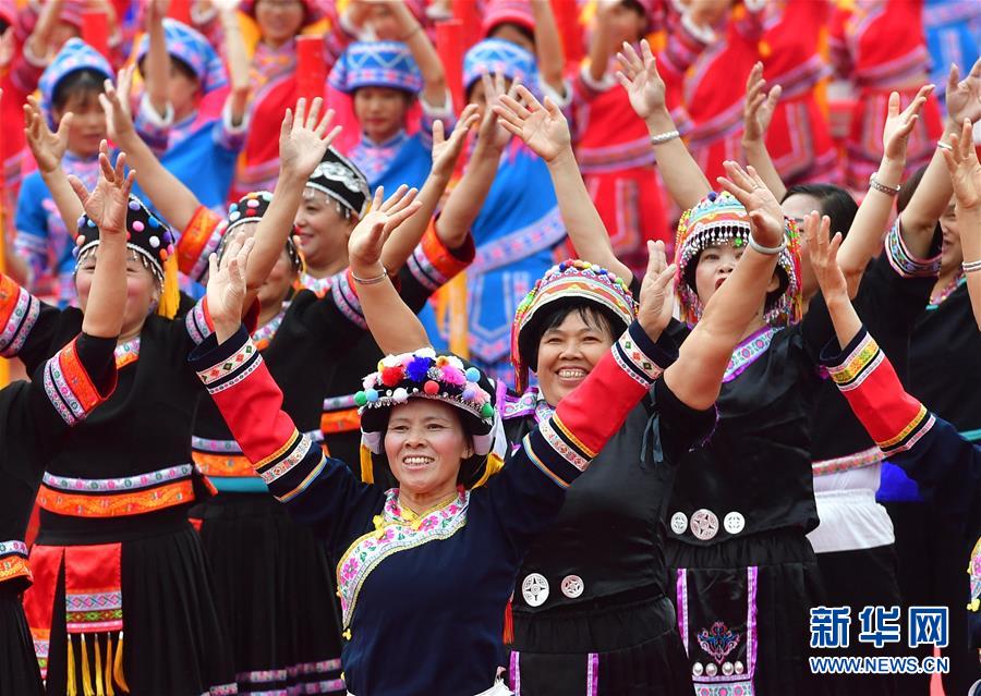 10月20日,各族同胞在廣西大化瑤族自治縣江濱文化廣場表演節(jié)目,慶??h慶?!⌒氯A社記者黃孝邦攝