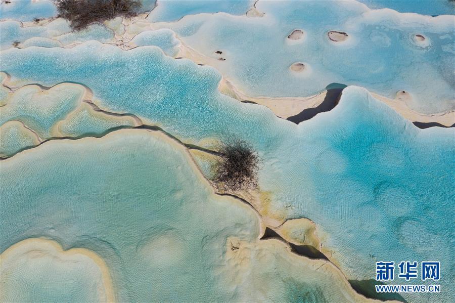 俯瞰黃龍溝爭艷池一角(10月19日無人拍機攝)。深秋時節(jié),在雪山、藍天、白云和彩林映襯下,黃龍溝中的彩池色彩更加斑斕,目前黃龍景區(qū)進入觀賞最佳時節(jié)。黃龍風(fēng)景名勝區(qū)位于四川省松潘縣境內(nèi),以彩池、灘流、雪山、峽谷、森林等聞名,享有“人間瑤池”“圣地仙境”之美譽。新華社記者 江宏景攝