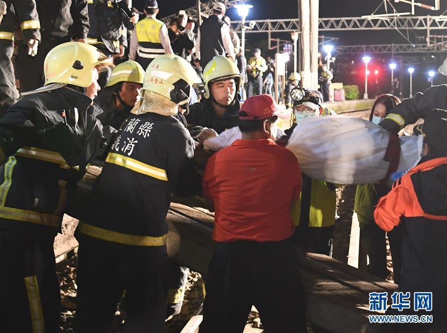 10月21日,救援人員在列車出軌翻覆事故現(xiàn)場工作。據(jù)臺灣宜蘭縣政府官員21日22時42分許在事故救援現(xiàn)場通報(bào),普悠瑪6432次列車出軌翻覆事故已致18人死亡、164人受傷,其中171人已確認(rèn)身份。據(jù)臺鐵介紹,發(fā)生事故的普悠瑪6432次列車21日下午3時9分從樹林出發(fā)開往臺東,下午4時50分在宜蘭新馬車站出軌,其中有車廂翻覆。事故原因還在調(diào)查中。 新華社記者金良快攝