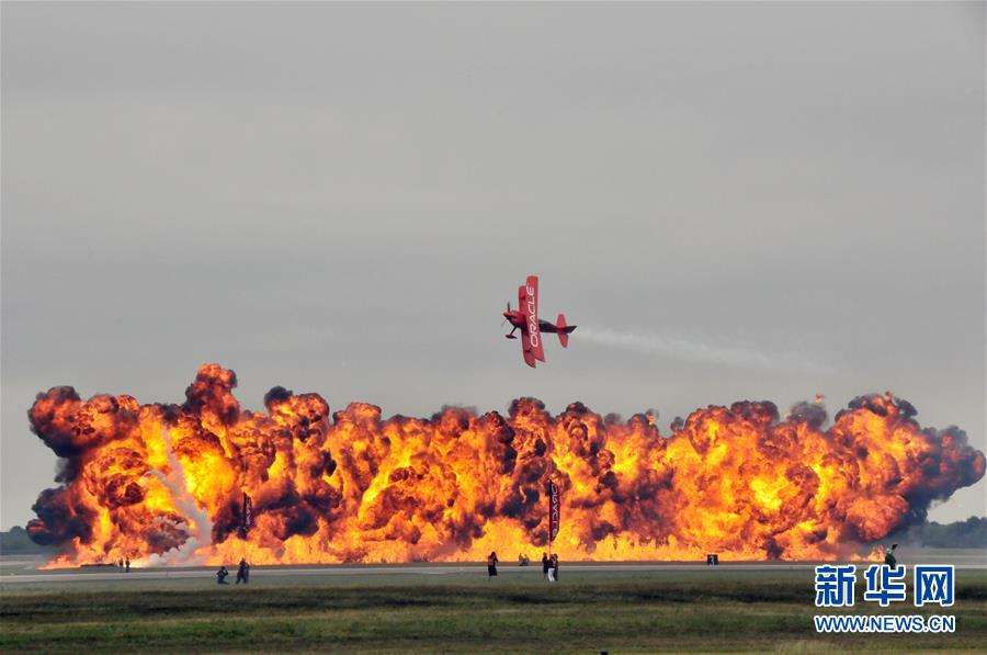 10月20日,在美國休斯敦,特技飛行員肖恩·塔克駕駛飛機進行飛行表演。 新華社記者劉立偉攝
