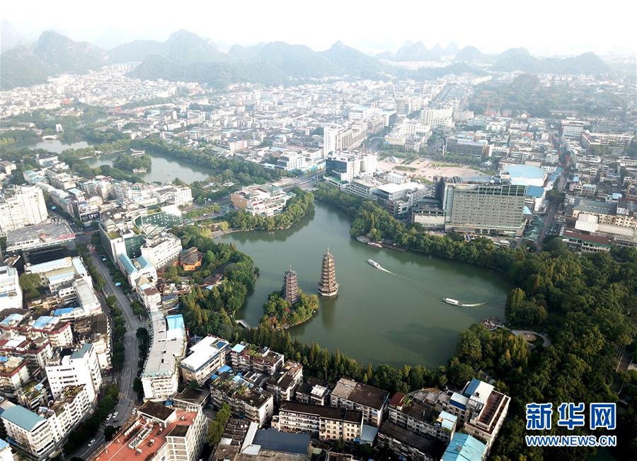 游船在廣西桂林市杉湖湖面上穿行(10月17日無人機拍攝)。 江作青羅帶,山如碧玉簪。1100多年前,唐朝詩人韓愈寫盡桂林山水之美。千百年來,桂林的青山綠水成為歷朝歷代文人騷客筆下的“人間仙境”。 保護好桂林山水,既是對祖國大好河山負(fù)責(zé),更是對歷史負(fù)責(zé)。近年來,尤其是黨的十八大以來,桂林嚴(yán)守生態(tài)底線,以前所未有的力度截污治河,保護漓江最美山水,推動城鄉(xiāng)統(tǒng)籌協(xié)調(diào)發(fā)展,不斷擴大對外開放合作力度,努力在青山綠水里走出一條生態(tài)文明路。 新華社記者 周華 攝