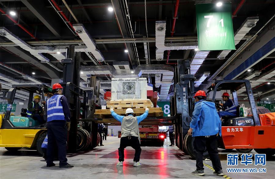 10月22日,現(xiàn)場工人動用四臺叉車同時作業(yè),將“金牛座”龍門銑床核心部件溜板滑枕抬起后等待卡車就位裝車。 當日,來自德國的首屆進口博覽會最大展品——“金牛座”龍門銑床完成初步組裝,將運往國家會展中心(上海)3號館進行最后的安裝施工。這是德國瓦德里??票す狙邪l(fā)的機床設(shè)備,高約8米,占地面積約200平方米,將在智能及高端裝備區(qū)進行展出。 新華社記者方喆攝