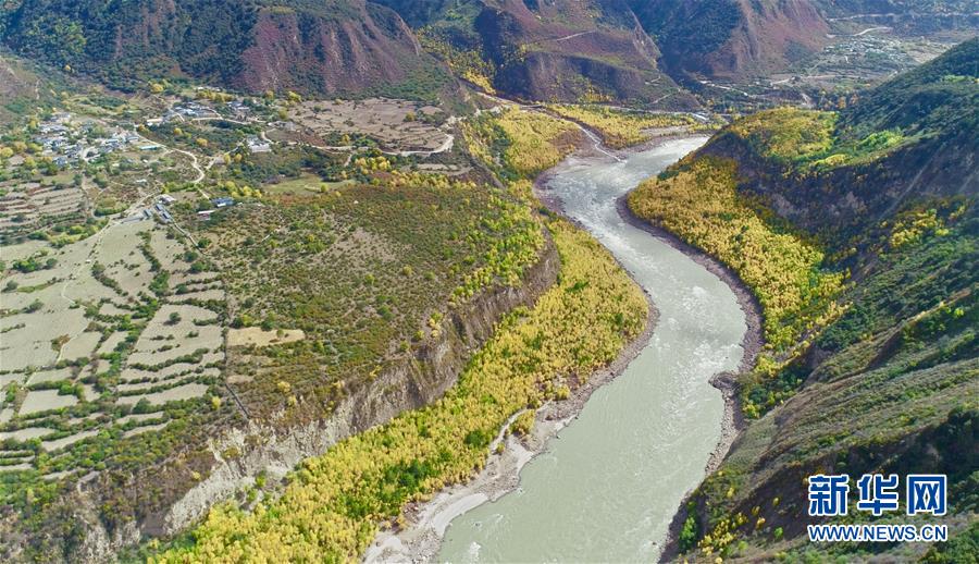 這是10月21日在西藏米林縣派鎮(zhèn)達(dá)林村拍攝的雅魯藏布江(無人機(jī)拍攝)。