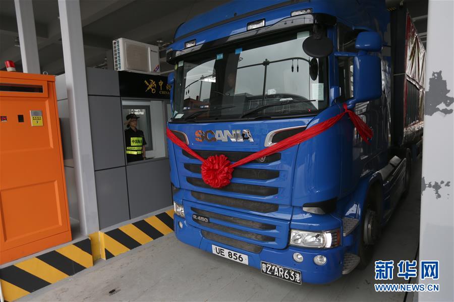 10月24日,港珠澳大橋珠海公路口岸通車首票出口貨物抵達一站式貨車出境驗放通道。當日9時,港珠澳大橋正式通車。 新華社記者張加揚攝