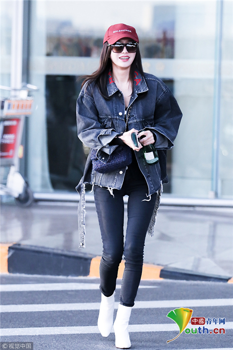 2018年10月24日,北京,“富察皇后”秦嵐現(xiàn)身機場。她頭戴小紅帽,身穿黑色緊身褲顯美腿筆直修長,上身穿著牛仔外套青春逼人,邊走邊甜笑玩“撩發(fā)殺”,靚麗吸睛。