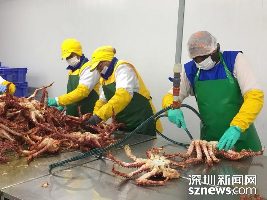 智力蜘蛛蟹加工基地, 產(chǎn)于南極洲海域。 李仁奇 攝