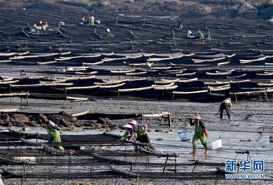 10月24日,福建莆田蔣山村村民在收獲紫菜?! ⌒氯A社記者姜克紅 攝