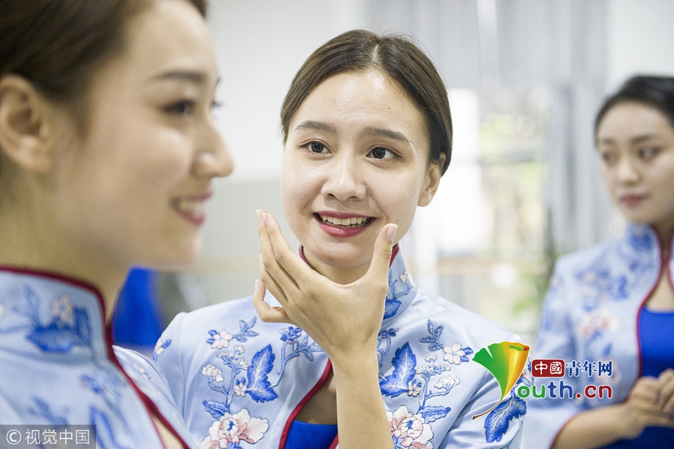 來(lái)自浙江傳媒學(xué)院的禮儀志愿者們正在進(jìn)行緊張有序的集中訓(xùn)練。圖片作者:浙江日?qǐng)?bào) 馮賀/視覺(jué)中國(guó)