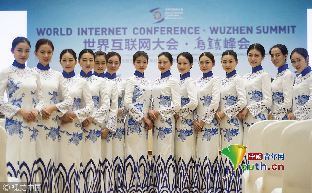 2015年12月14日,浙江嘉興,在烏鎮(zhèn)景區(qū)枕水度假酒店,身著中式青花旗袍的美女禮儀驚艷亮相主會場,成為世界互聯(lián)網大會上一道靚麗的風景。