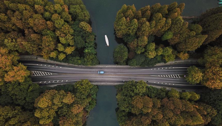 深秋時節(jié),山東濟南楔子山山脊兩邊種植的植被形成“一山雙色”景觀,令人稱奇。