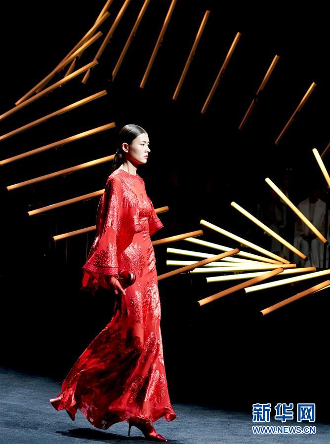 11月2日,模特在北京舉行的中國國際時裝周閉幕式上展示EP雅瑩時裝。11月2日,中國國際時裝周(2019春夏系列)在北京落下帷幕。 新華社記者 陳建力攝