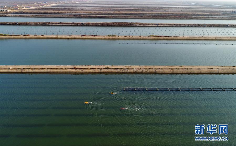 10月22日,樂(lè)亭縣姜各莊鎮(zhèn)二節(jié)村海參養(yǎng)殖基地的工人在捕撈海參(無(wú)人機(jī)拍攝)。 時(shí)下,正值渤海灣地區(qū)海參收獲時(shí)節(jié),河北省樂(lè)亭縣的海參養(yǎng)殖戶(hù)忙著捕撈海參,供應(yīng)各地市場(chǎng)。據(jù)介紹,該縣海域水質(zhì)優(yōu)良、氣候適宜,是海參養(yǎng)殖的理想場(chǎng)地,目前發(fā)展池塘造礁養(yǎng)殖海參面積6萬(wàn)畝,年產(chǎn)鮮活海參6000多噸,年產(chǎn)值2億多元。 新華社記者 楊世堯 攝