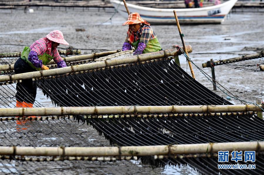 10月24日,福建莆田蔣山村村民在收獲紫菜?! ⌒氯A社記者姜克紅 攝