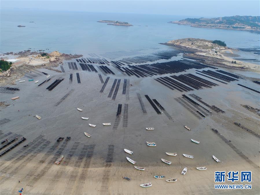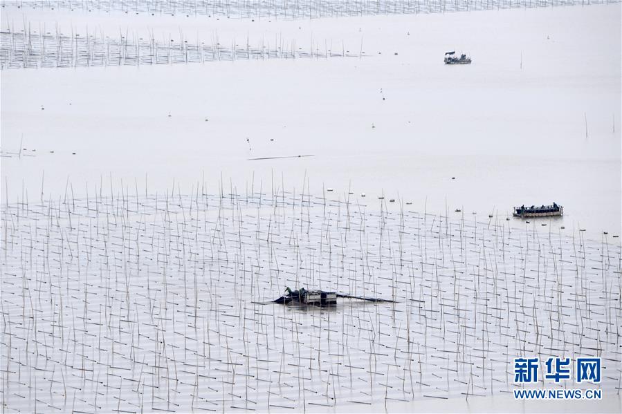 10月24日,福建莆田蔣山村村民在收獲紫菜。 新華社記者張國(guó)俊 攝