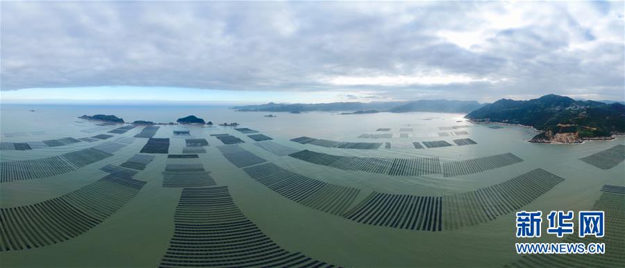 這是11月4日無(wú)人機(jī)拍攝的霞浦縣長(zhǎng)春鎮(zhèn)的紫菜種植區(qū)(拼接照片)。 近日,福建省霞浦縣沿海6萬(wàn)畝紫菜迎來(lái)收獲季節(jié),漁民們出海收獲紫菜,海上田園一派繁忙豐收景象。 新華社記者 姜克紅 攝