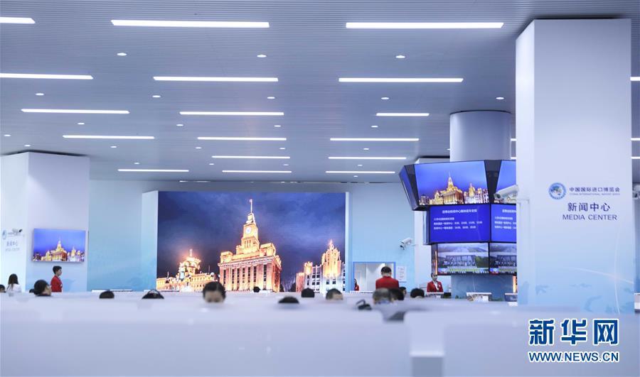 這是11月4日拍攝的首屆中國(guó)國(guó)際進(jìn)口博覽會(huì)新聞中心媒體公共工作區(qū)一角。 新華社記者蘭紅光攝