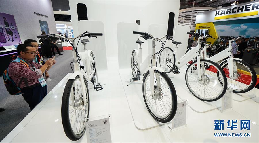 11月6日,觀眾在了解一種碳纖維框架的電動自行車。 新華社記者 王建華 攝