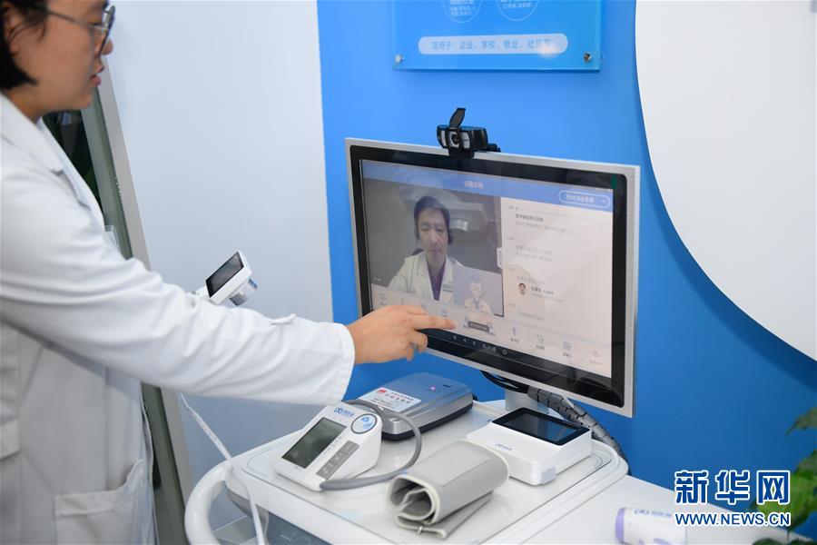11月6日,烏鎮(zhèn)互聯(lián)網(wǎng)醫(yī)院的員工在操作“智能醫(yī)務(wù)室”與醫(yī)生的視頻連線功能。據(jù)了解,“智能醫(yī)務(wù)室”由智能移動醫(yī)療一體機(jī)、智能藥柜以及一系列檢查設(shè)備組成,根據(jù)健康檔案和檢查結(jié)果,視頻連接家庭醫(yī)生就能解決常見的醫(yī)療健康問題。  新華社記者黃宗治攝