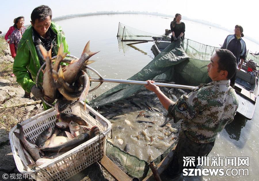 深圳新聞網(wǎng)訊 江蘇揚(yáng)州,邗江區(qū)公道鎮(zhèn)南湖村南湖水域,專業(yè)捕撈隊(duì)人員已集結(jié)到胡登強(qiáng)養(yǎng)殖戶家魚塘進(jìn)行捕撈作業(yè)。據(jù)捕撈隊(duì)員沈昌田介紹,近期隨氣溫轉(zhuǎn)冷,魚的銷量增加,水產(chǎn)養(yǎng)殖戶紛紛捕魚上市,為趕在上午10時(shí)將魚運(yùn)到水產(chǎn)批發(fā)市場(chǎng)銷售,專業(yè)捕撈隊(duì)員們天不亮就起床,下河塘布圍網(wǎng)、收網(wǎng)撈魚、過秤裝車。一周捕撈作業(yè)有三四次之多,一次捕撈多達(dá)上萬斤魚。公道鎮(zhèn)有水面灘涂6.5萬畝,是魚、蝦、蟹、等水產(chǎn)品養(yǎng)殖的理想場(chǎng)所。