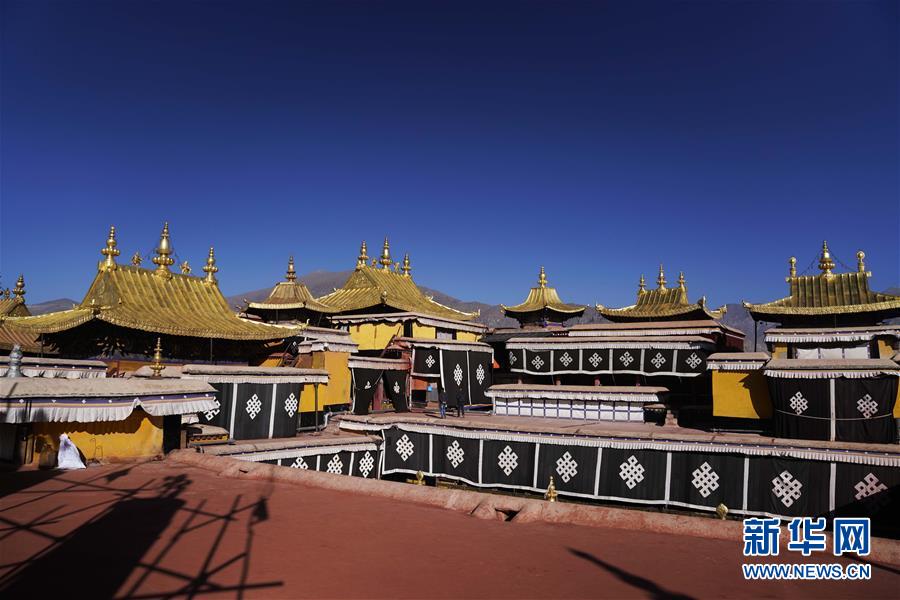 修繕后的布達(dá)拉宮金頂群(11月7日攝)。 新華社記者普布扎西攝