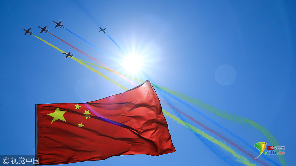 2018年11月7日,空軍紅鷹隊(duì)在廣東省珠海市第十三屆中國航空航天博覽會(huì)上進(jìn)行飛行表演。視覺中國