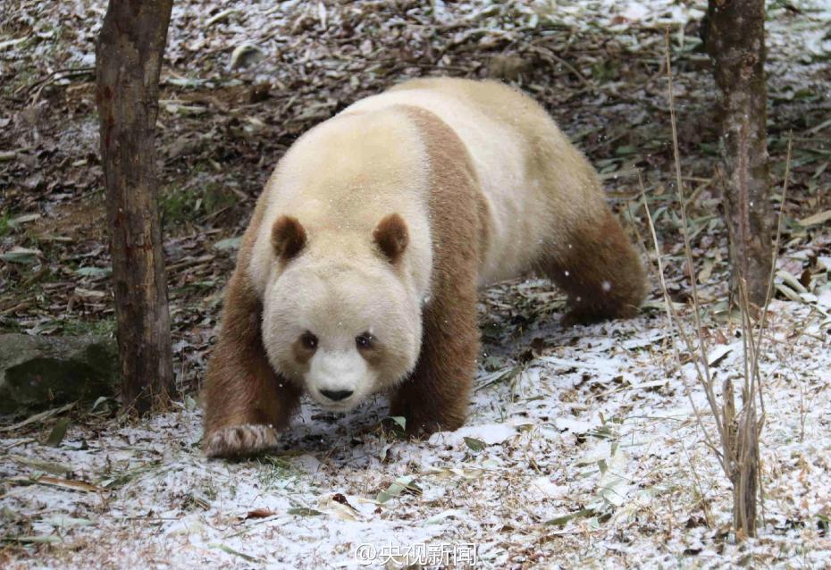 秦嶺大熊貓野化培訓(xùn)佛坪基地,7歲的棕色大熊貓七仔是目前全世界唯一能看到的棕色大熊貓活體。今年是它在基地過(guò)的第二個(gè)冬天,每逢下雪,七仔就興奮地滿園子跑,變身“雪花熊”。央視記者李志王志杰 圖片來(lái)源:央視新聞官方微博