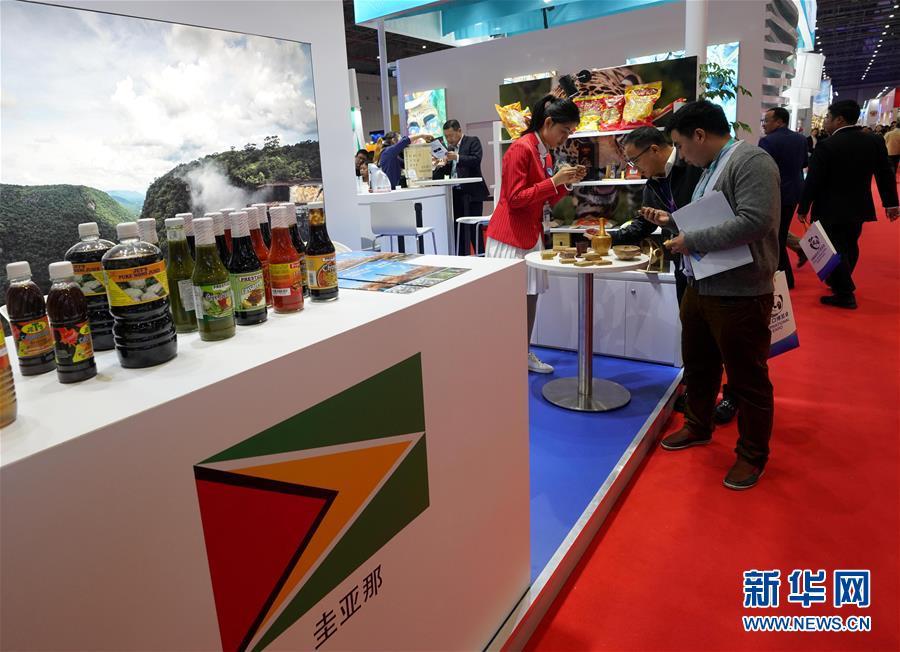 11月8日,在加勒比地區(qū)國家展區(qū)圭亞那展臺,參觀者與工作人員交談。 中國國際進(jìn)口博覽會11月5日在上海開幕。國家貿(mào)易投資綜合展(國家展)是中國國際進(jìn)口博覽會的重要內(nèi)容,共有82個國家、3個國際組織設(shè)立71個展臺。 新華社記者 程麗 攝