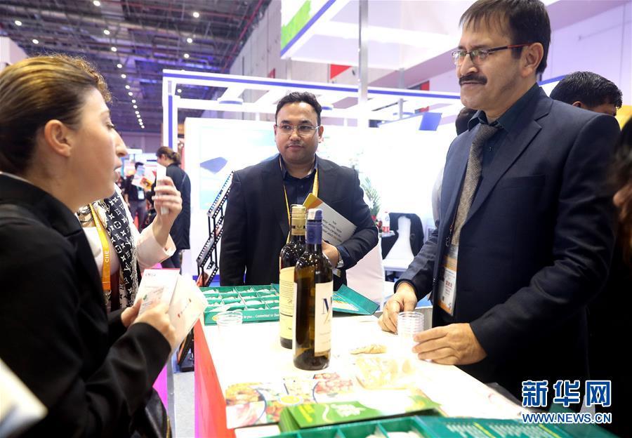 11月7日,印度展區(qū)的工作人員向參觀者進(jìn)行推介。 中國國際進(jìn)口博覽會(huì)11月5日在上海開幕。國家貿(mào)易投資綜合展(國家展)是中國國際進(jìn)口博覽會(huì)的重要內(nèi)容,共有82個(gè)國家、3個(gè)國際組織設(shè)立71個(gè)展臺(tái)。 新華社記者 陳飛 攝