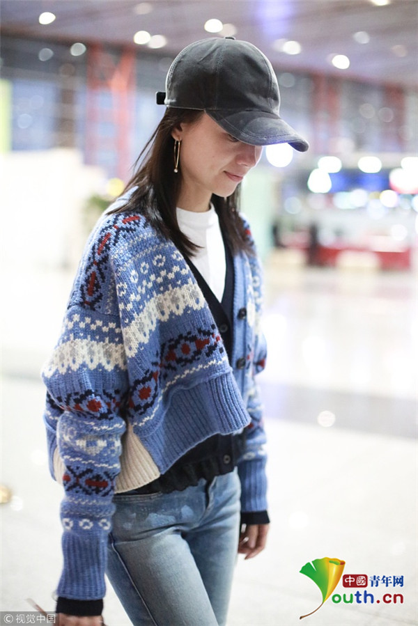 董潔素面朝天現(xiàn)身機(jī)場