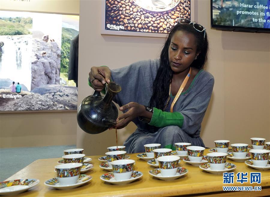 11月6日,在首屆中國國際進(jìn)口博覽會上,埃塞俄比亞參展人員為參觀者倒咖啡。新華社記者 沈伯韓 攝