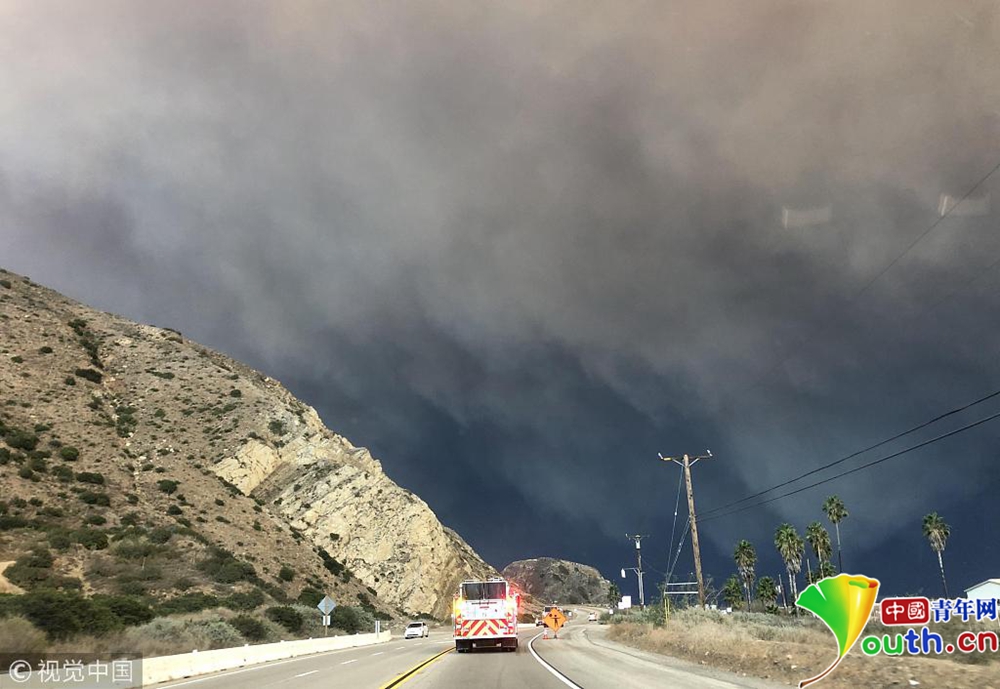當(dāng)?shù)貢r(shí)間11月9日下午,美國(guó)加利福尼亞州南部文圖拉郡(Ventura County)等地熊熊山火已延燒逾萬英畝,濃煙遮天蔽日。