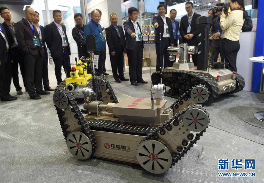 11月10日,與會嘉賓在觀看展出的消防機(jī)器人。 新華社記者韓傳號攝