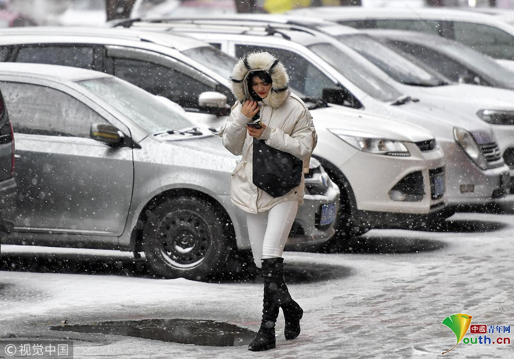 風雪中,民眾裹緊衣領(lǐng)腳步匆匆。圖片作者:劉新