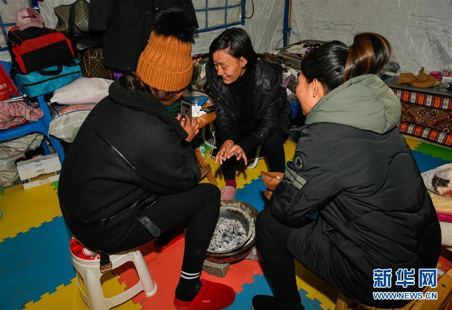 在西藏昌都市江達縣波羅鄉(xiāng)康扎西安置點,群眾在帳篷內取暖(11月11日攝)。 西藏自治區(qū)江達縣波羅鄉(xiāng)康扎西安置點,離波羅鄉(xiāng)政府直線距離約3公里,位于一處地勢開闊平緩的山谷中,比堰塞湖水面高出100多米。10月11日金沙江白格段山體滑坡發(fā)生后,當?shù)鼐驮谶@里設立了安置點,安置附近受災群眾。 新華社記者 劉東君 攝