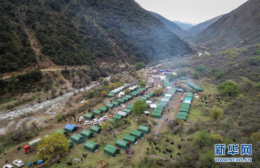 10月19日拍攝的在米林縣派鎮(zhèn)尼定村搭建的安置點。 記者從西藏自治區(qū)林芝加拉村雅魯藏布江堰塞湖災情應急搶險工作第二場新聞發(fā)布會上獲悉,19日13時30分,雅魯藏布江米林縣堰塞體上游水位超過堰塞體,開始自然過流,上游水位正在緩慢下降。目前,各項搶險救援工作正在有序開展。 新華社記者 覺果 攝