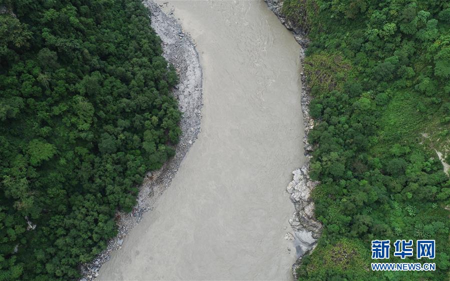 洪峰過境后的西藏雅魯藏布江墨脫段局部畫面(10月20日無人機拍攝)。 新華社記者劉東君攝