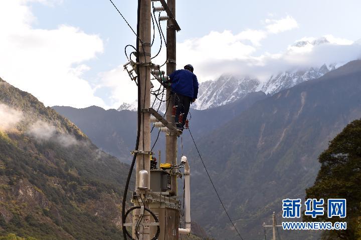 湖水淹沒地段,電力部門實(shí)施斷電措施,以防意外發(fā)生(10月18日攝)。 新華社記者 覺果攝