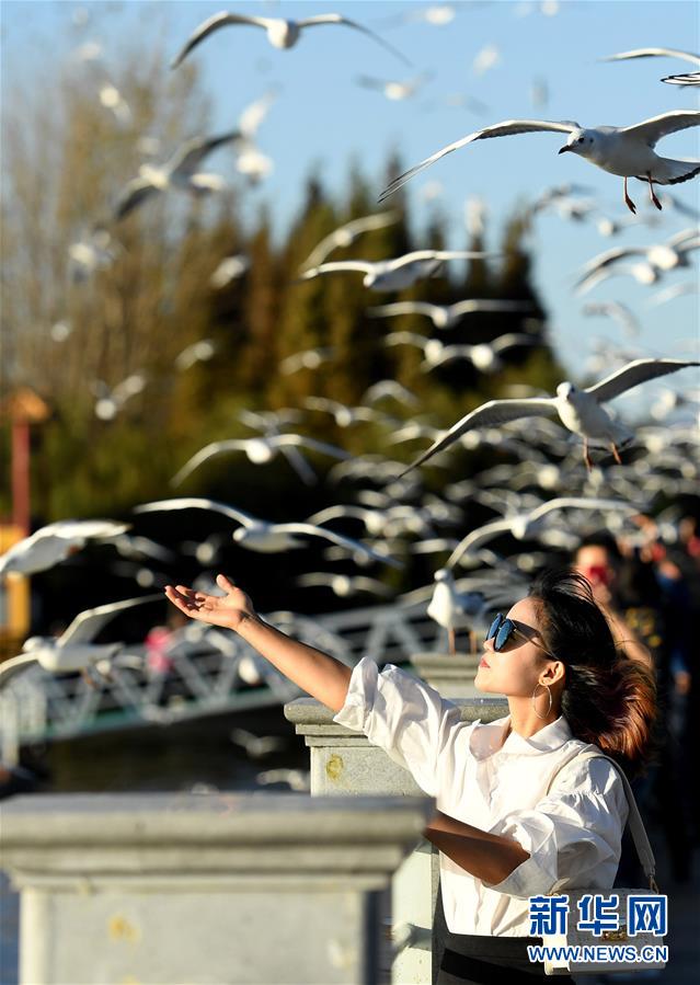 近日,云南省昆明市陽(yáng)光明媚、氣候宜人,不少市民和游客來到滇池大壩、大觀公園等地,觀賞前來越冬的紅嘴鷗。