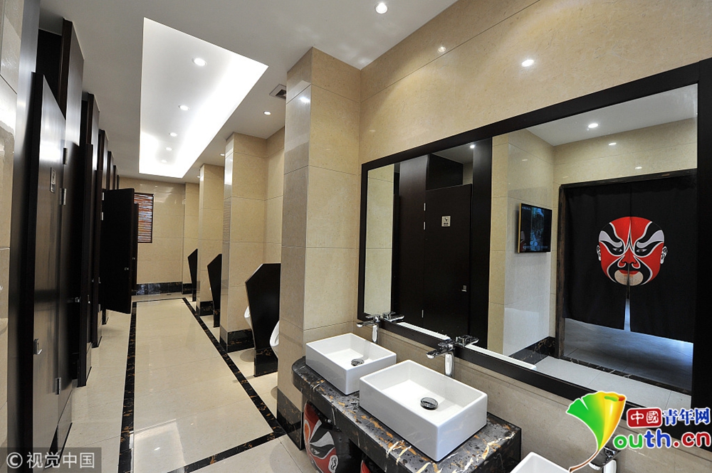 “第5空間”男女廁所的廁標別具特色,選用京劇臉譜的形式,讓人充滿了新奇感。公廁內(nèi)設有母嬰室,里面安裝了各類為帶嬰兒的媽媽們上廁所提供便利的設施,除洗手池和供兒童、成人專用坐便器外,還有折疊式的嬰兒座椅和護理臺,這樣帶嬰兒的媽媽進來如廁,就可以把孩子安全地放在椅子上;如果孩子需要換尿布,也可以在護理臺上完成?! ?/p>