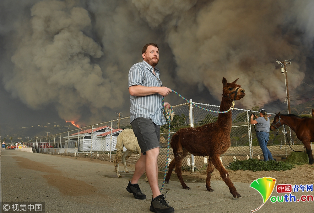 山火迅速蔓延至剛剛發(fā)生槍擊案的千橡樹市,并在9日翻過圣莫妮卡山,在強風的助力下向海邊蔓延。