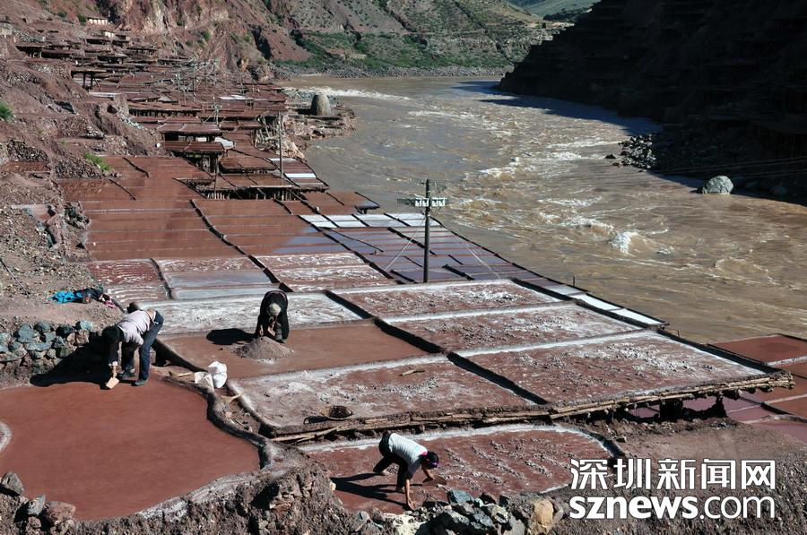 這些山泉水含有很高的鹽分,鹽水在風(fēng)吹日曬下會(huì)自然蒸發(fā);當(dāng)水分蒸發(fā)后就結(jié)晶出鹽粒,從灌水到收鹽大約需一個(gè)月時(shí)間。李仁奇攝