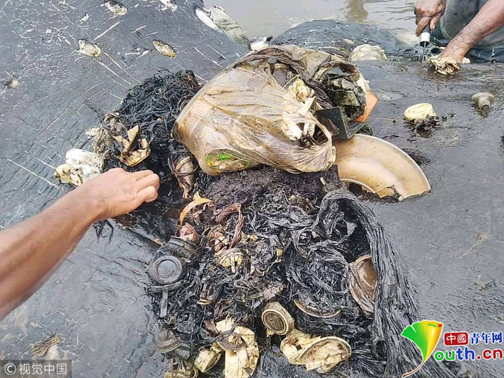 它的腹中有12斤塑料垃圾。