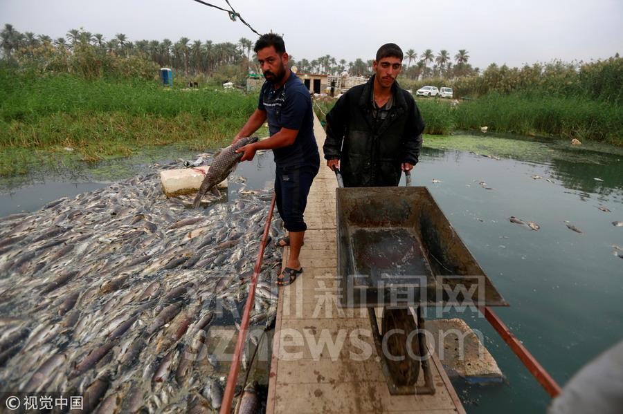 一些漁民把打撈上來(lái)的死魚(yú)一一進(jìn)行查看,試圖找到魚(yú)群大量死亡的真正原因。