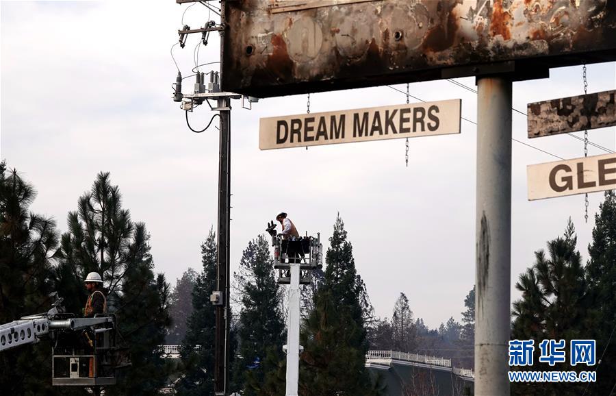 11月20日,在美國(guó)加利福尼亞州比尤特縣天堂鎮(zhèn),救援人員在山火廢墟中工作。