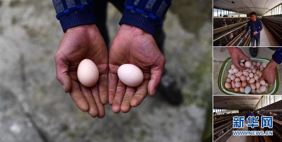 拼版照片:左圖為貧困戶李先強(qiáng)手捧養(yǎng)殖合作社生產(chǎn)的雞蛋(11月19日攝);右圖為李先強(qiáng)在雞舍里撿雞蛋(照片均攝于11月19日)。李先強(qiáng)是融水苗族自治縣香粉鄉(xiāng)香粉村的貧困戶,從2016年開始,他和15個(gè)貧困戶一起發(fā)展土雞養(yǎng)殖。目前合作社養(yǎng)有3000多只雞,年產(chǎn)雞蛋1萬(wàn)多斤。 廣西融水苗族自治縣是國(guó)家扶貧工作重點(diǎn)縣,全縣“九山半水半分田”,生活生產(chǎn)環(huán)境較為惡劣,脫貧攻堅(jiān)任務(wù)艱巨,目前還有7.68萬(wàn)貧困人口。面對(duì)經(jīng)濟(jì)發(fā)展落后、貧困面廣且程度深的現(xiàn)狀,當(dāng)?shù)匕衙撠毠?jiān)與創(chuàng)新產(chǎn)業(yè)扶持相結(jié)合,依托生態(tài)資源優(yōu)勢(shì),實(shí)施“特色產(chǎn)業(yè)富民行動(dòng)”,通過(guò)發(fā)展特色民族旅游、林下經(jīng)濟(jì)和特色養(yǎng)殖業(yè)等扶貧產(chǎn)業(yè),帶動(dòng)貧困群眾依靠勤勞的雙手,拔窮根摘窮帽,實(shí)現(xiàn)脫貧致富。據(jù)了解,目前全縣貧困戶參與特色產(chǎn)業(yè)發(fā)展的有2.9萬(wàn)戶,扶貧產(chǎn)業(yè)覆蓋率達(dá)95%。 新華社記者 黃孝邦 攝