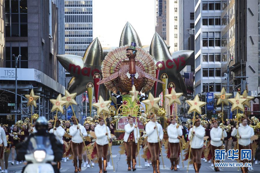 當(dāng)日,第92屆梅西感恩節(jié)大游行在紐約舉行,各式各樣的玩偶?xì)馇颉⒒ㄜ囮?duì)伍在曼哈頓的摩天大樓間穿行,吸引數(shù)百萬(wàn)民眾前來觀看。梅西感恩節(jié)大游行始于1924年,是全美規(guī)模最大的感恩節(jié)游行。