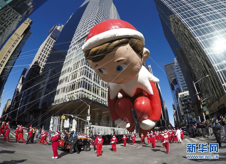 當(dāng)日,第92屆梅西感恩節(jié)大游行在紐約舉行,各式各樣的玩偶?xì)馇颉⒒ㄜ?chē)隊(duì)伍在曼哈頓的摩天大樓間穿行,吸引數(shù)百萬(wàn)民眾前來(lái)觀看。梅西感恩節(jié)大游行始于1924年,是全美規(guī)模最大的感恩節(jié)游行。