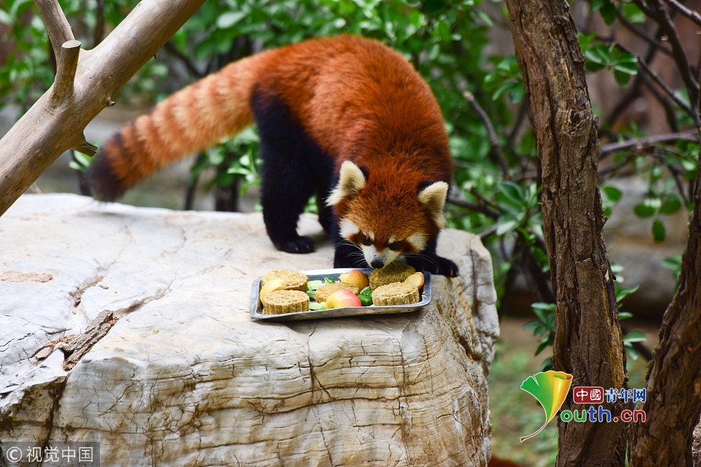 2016年9月10日,重慶,中秋節(jié)即將來臨,飼養(yǎng)員們給一些動(dòng)物也發(fā)放了“月餅”,根據(jù)不同的動(dòng)物選擇不同的食材。