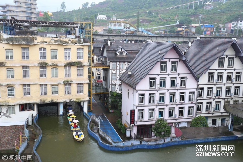 2018年6月20日,重慶涪陵,紅酒小鎮(zhèn)人工運河全長近5公里,2009年開建,先期依梨香溪岸線而建,后期隨著景區(qū)的發(fā)展,運河逐漸拓展為高架橋的“空中運河”,穿樓而過的“室內(nèi)運河”,穿水上樂園而過的“水中運河”。為確保一個水平面,運河見房穿洞,過路搭橋,游客乘坐觀光船或蕩舟其中成為一道獨特的風(fēng)景線。隨著8D魔幻重慶的不斷走紅,該景區(qū)的網(wǎng)紅運河正受到游客的喜愛與“打卡”。