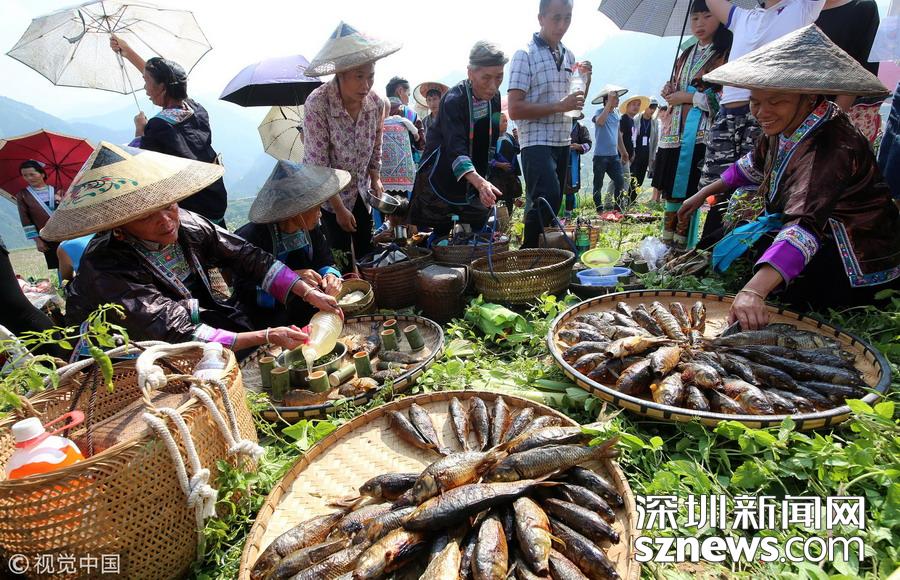 深圳新聞網(wǎng)訊  2018年9月15日,廣西柳州市融水苗族自治縣喜迎中國首屆“農(nóng)民豐收節(jié)”——2018金秋燒魚季啟動儀式在桿洞鄉(xiāng)花孖苗寨舉行,數(shù)百名苗族群眾和游人共同開展了水田拔河、田間捉魚、傳統(tǒng)打谷和燒魚等活動,慶祝豐收。